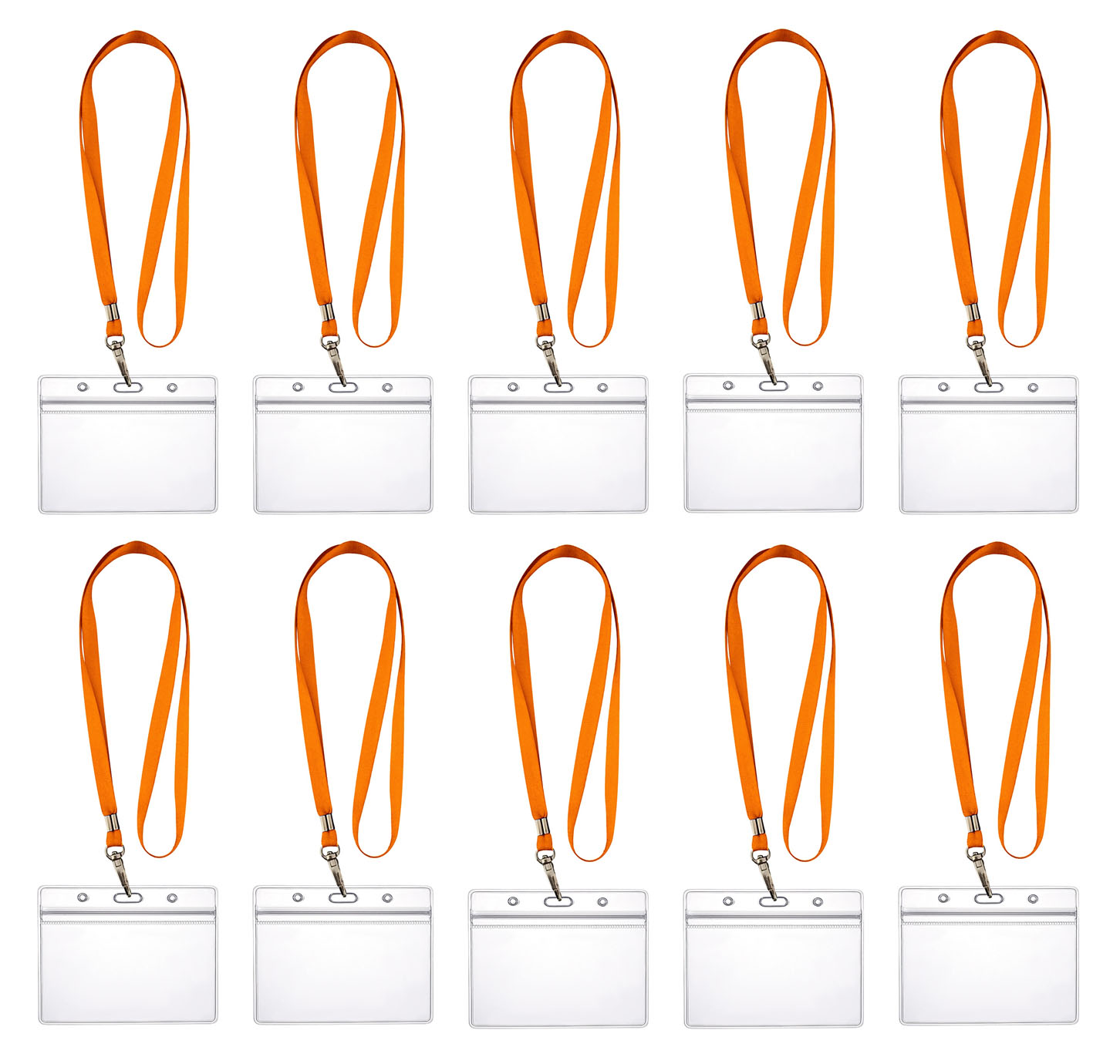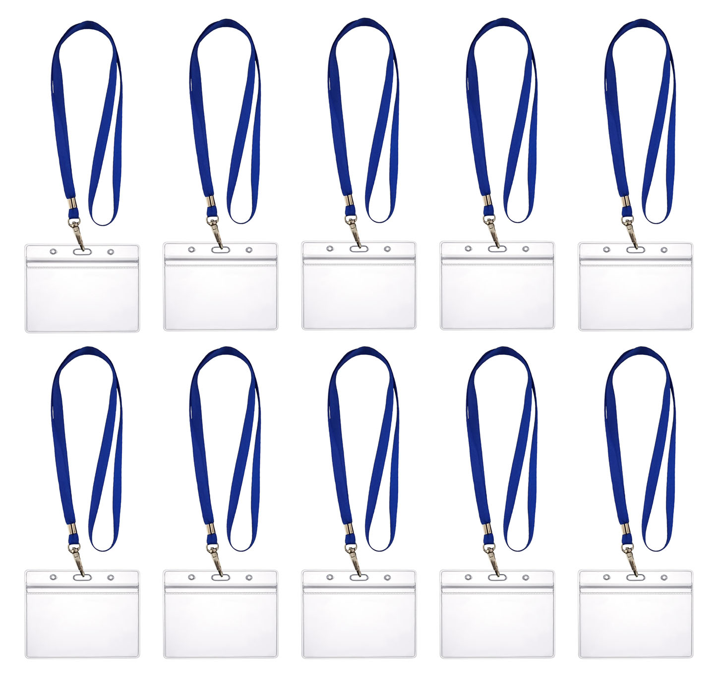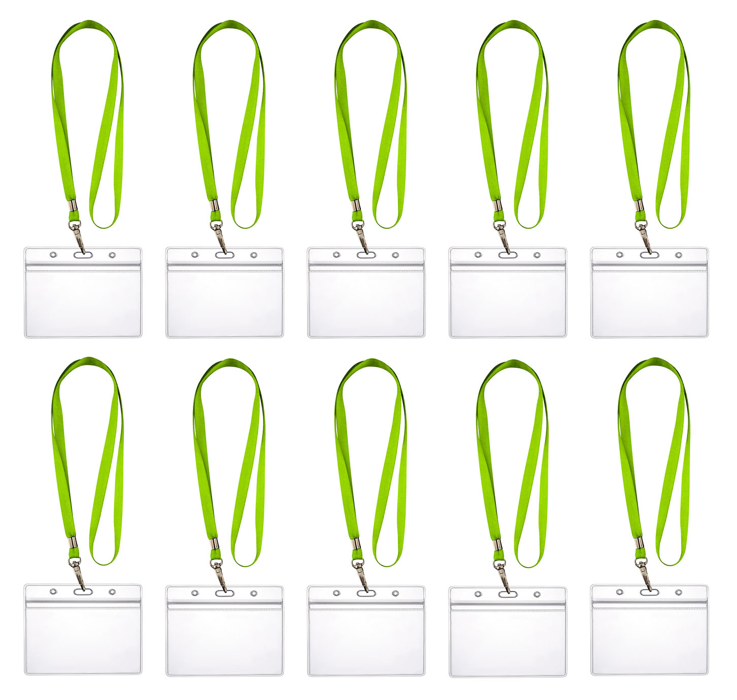 Das Set enthält 10 Ausweishüllen (horizontal und vertikal) sowie 10 Umhängebänder (Lanyards) zur direkten Nutzung.