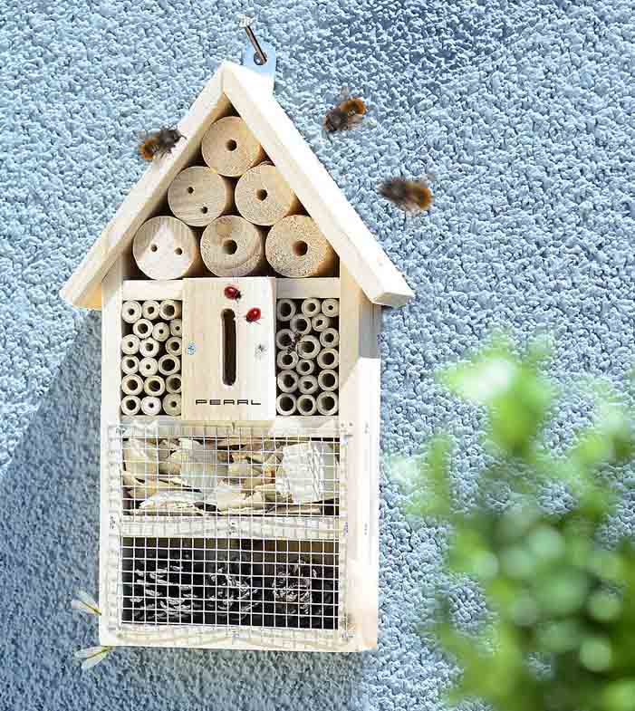 Quartier für fleißige Helfer: Das Hotel dient als Unterschlupf, Nist- und Überwinterungshilfe für viele verschiedene Insekten. Es bietet ihnen Schutz vor Wind und Wetter sowie vor Feinden.
