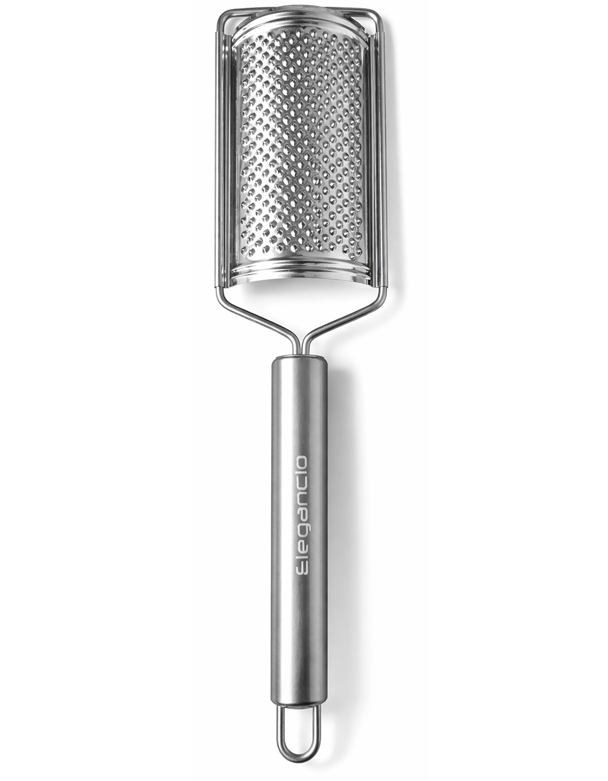 Die Reibe verfügt über eine praktische Aufhängevorrichtung am Griffende, sodass sie direkt in der Küche griffbereit verstaut werden kann.