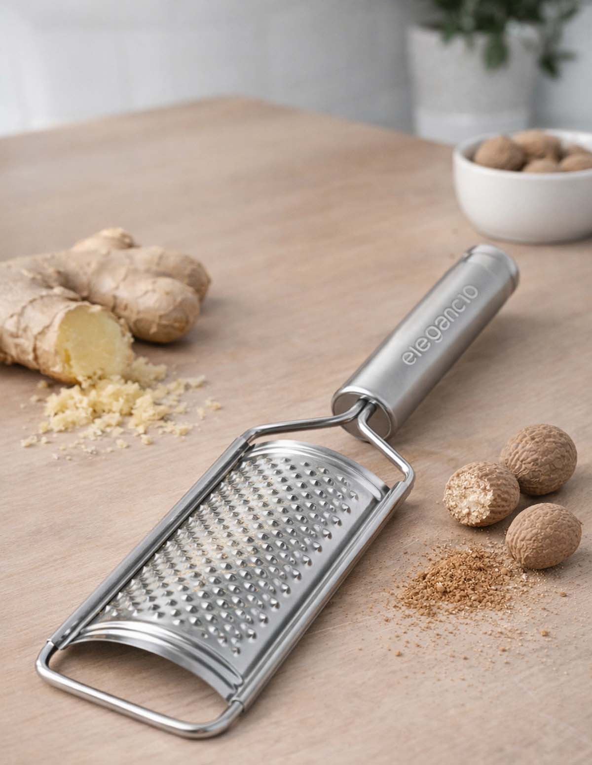 Unsere praktische Gewürzreibe, Apfel- Ingwer- und Muskatreibe für frisch zubereitete Speisen aus natürlichen Zutaten.
